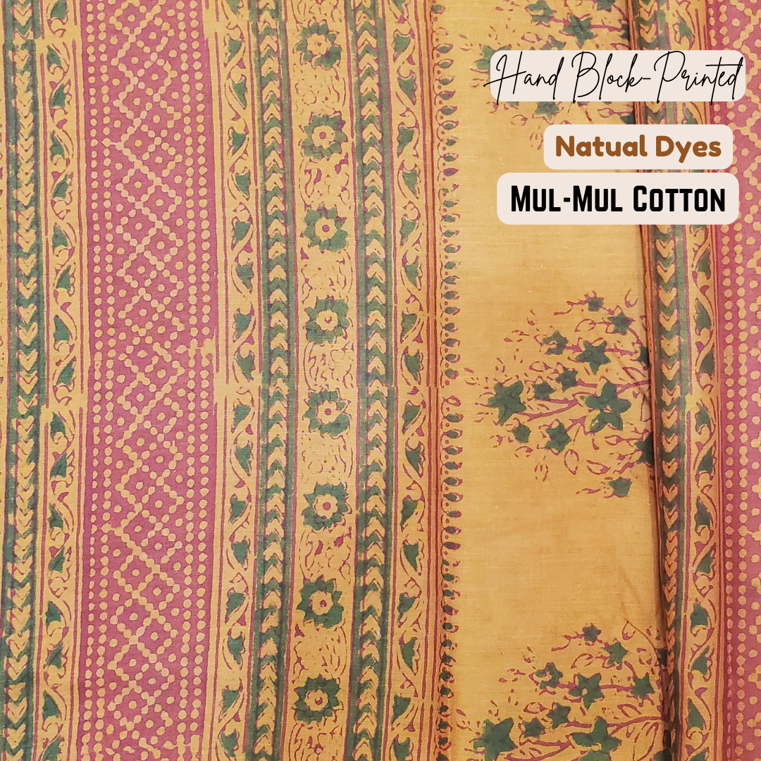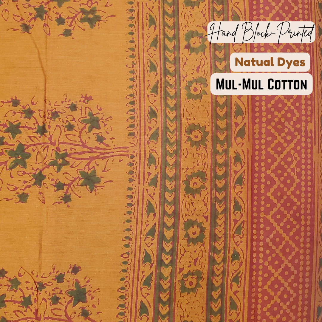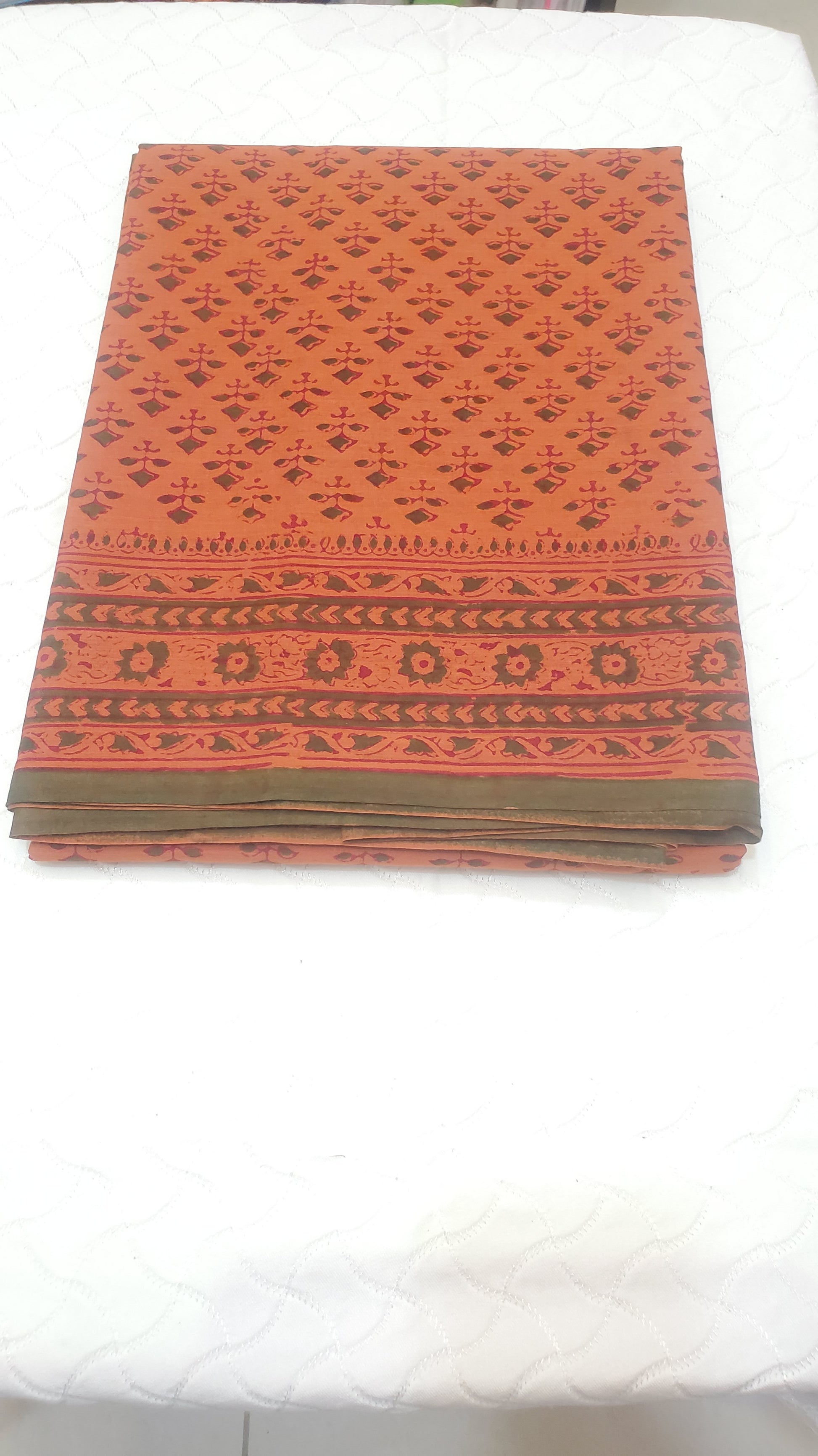 🧡 Premium Hand Block-Printed Mul Mul Cotton Saree 🧡